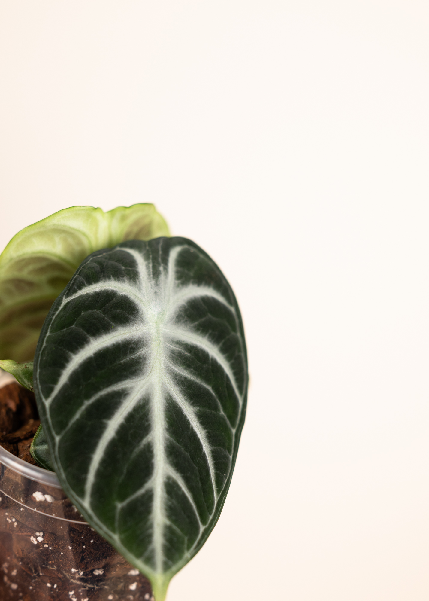 Die Alocasia Ninja ist eine echte Erscheinung: ihre fast schwarzen Blätter mit metallischem Glanz sehen aus, als wären sie direkt aus einem Fantasy-Film entsprungen. Und trotz ihres dramatischen Looks ist sie gar nicht so anspruchsvoll – solange sie genug Luftfeuchtigkeit bekommt, wächst sie zuverlässig weiter.