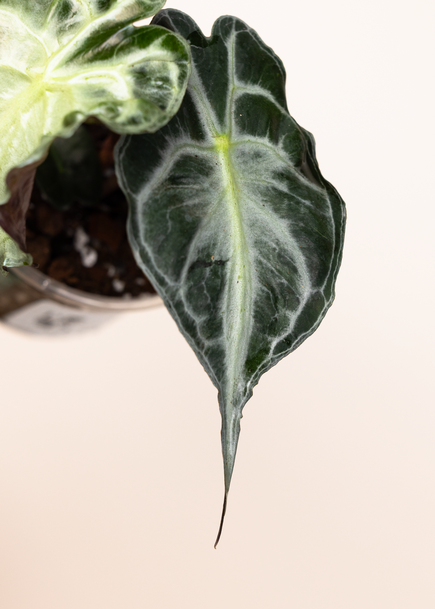Die Alocasia ‘Venom’ ist eine markante und ausdrucksstarke Alokasie mit dunkler, geheimnisvoller Ausstrahlung. Ihre pfeilförmigen Blätter zeigen ein tiefes Grün bis fast Schwarz und werden von kontrastreichen, helleren Blattadern durchzogen – ein Look, der an exotische, fast „giftige“ Muster erinnert.