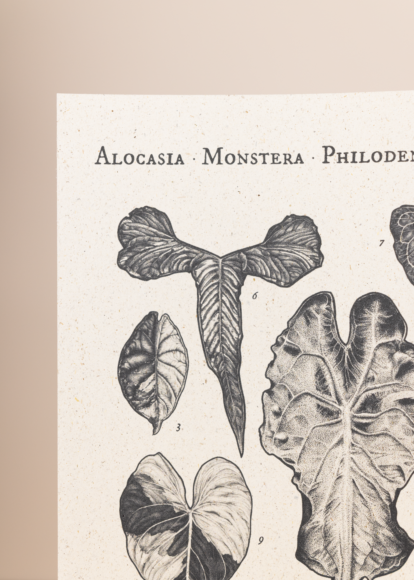 Botanische Illustration - Alocasia, Monstera & mehr A4