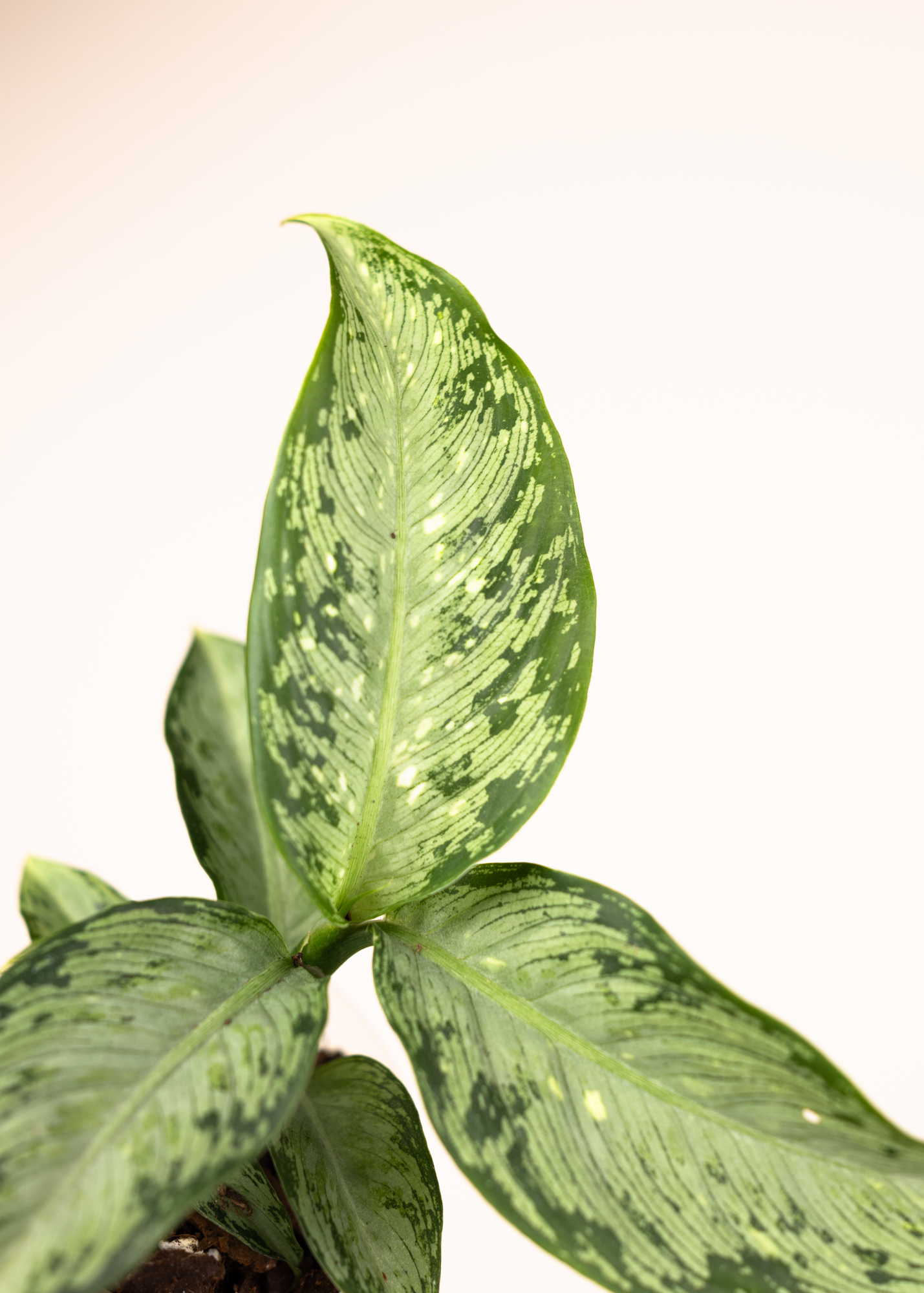 Die Dieffenbachia ‘Memoria Corsii’ ist eine elegante und zugleich robuste Blattschmuckpflanze mit charaktervoller Musterung. Ihre großen, ovalen Blätter zeigen ein lebendiges Zusammenspiel aus sattem Grün und helleren, oft leicht silbrig wirkenden Zeichnungen, die der Pflanze Tiefe und Struktur verleihen.