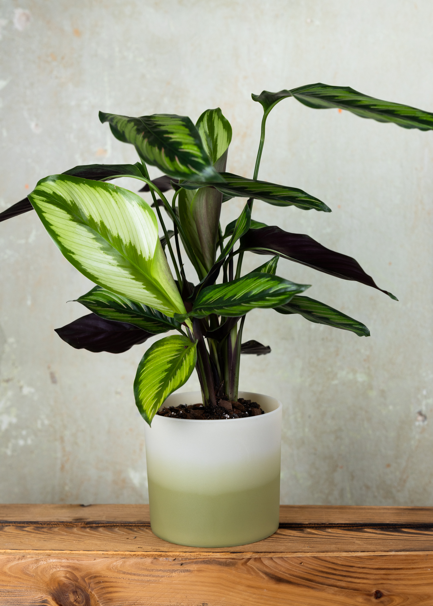 Die Goeppertia ornata 'Beauty Star', früher unter dem Namen "Calathea" bekannt, ist eine bemerkenswerte Zimmerpflanze, die vor allem durch ihre atemberaubende Blattmusterung beeindruckt. Obwohl Goeppertias oft den Ruf haben, wählerisch zu sein, sind sie tatsächlich pflegeleicht, solange du einige grundlegende Pflegeregeln befolgst. Diese beinhalten die Verwendung von gefiltertem Leitungs- oder Regenwasser. Das Substrat sollte stets feucht, aber nicht übermäßig nass gehalten werden sollte. Eine höhere Luftfeuchtigkeit, wie sie im Badezimmer herrscht, ist ideal für diese Schönheit.
