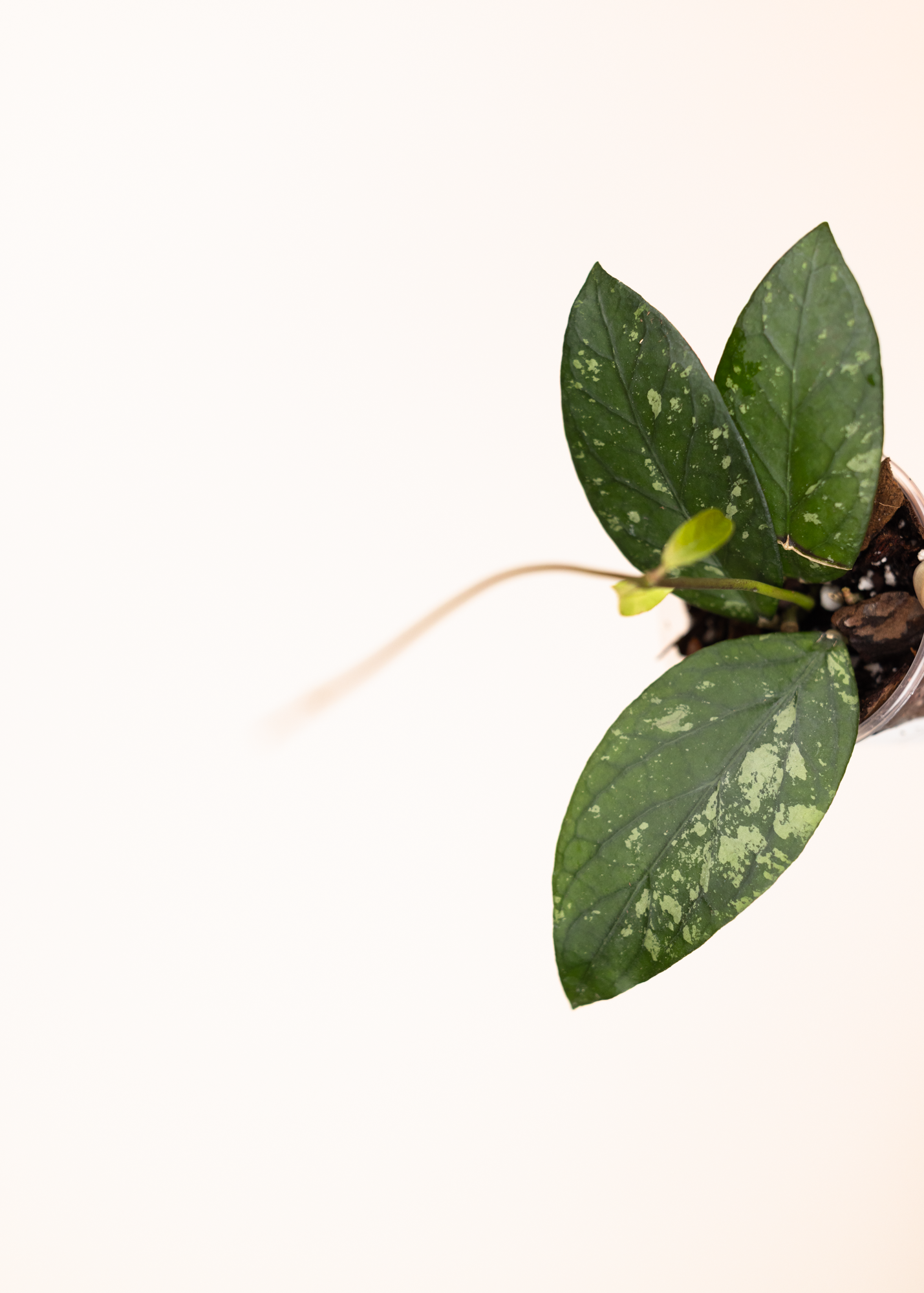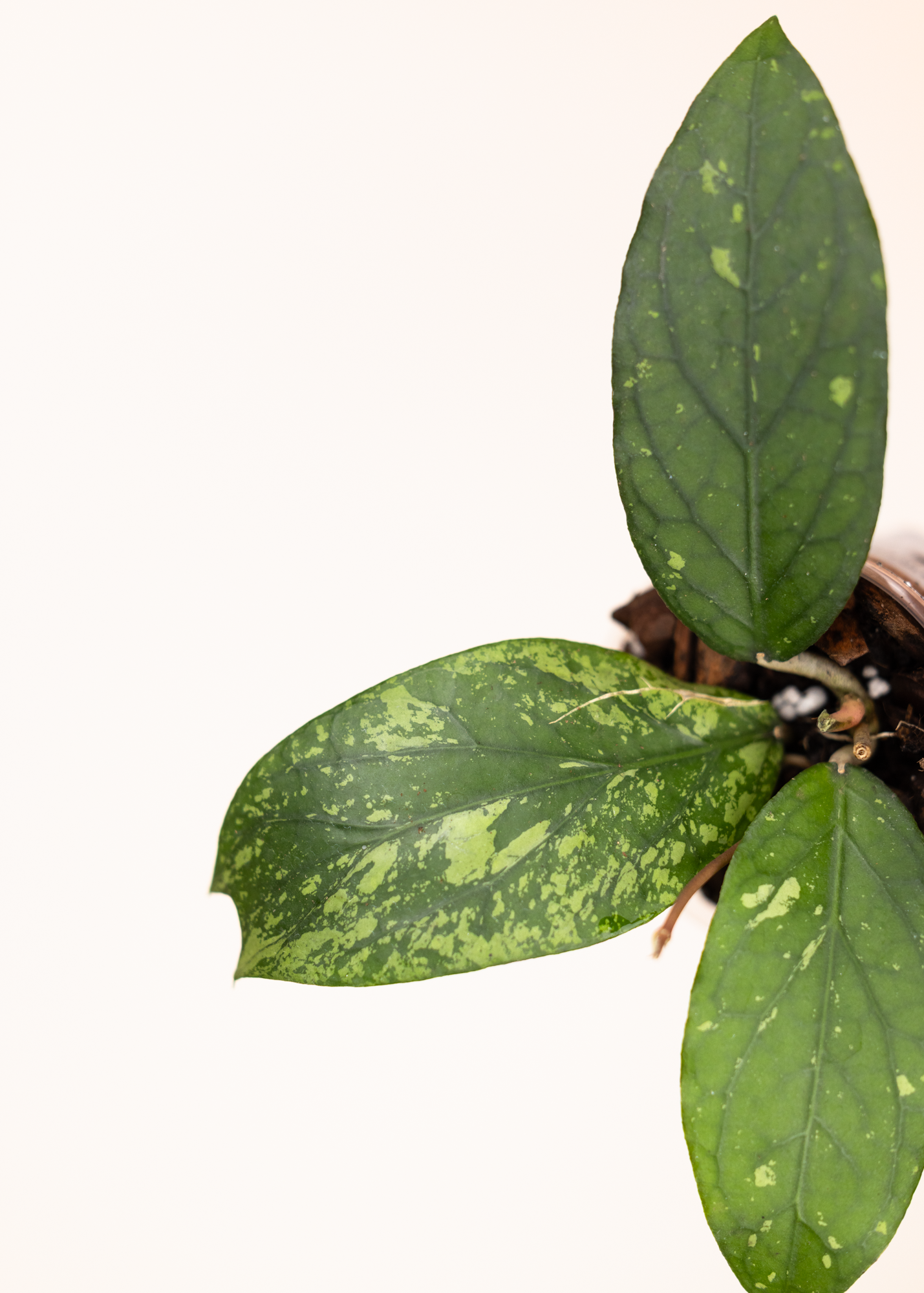 Die Hoya sp. Gayo ist eine seltene, kletternde Hoya mit kräftigen, sattgrünen Blättern und natürlicher, ruhiger Ausstrahlung. Ihre festen, leicht strukturierten Blätter verleihen ihr einen markanten, aber dennoch eleganten Look – ideal für moderne Wohnräume oder Sammlungen besonderer Hoyas.