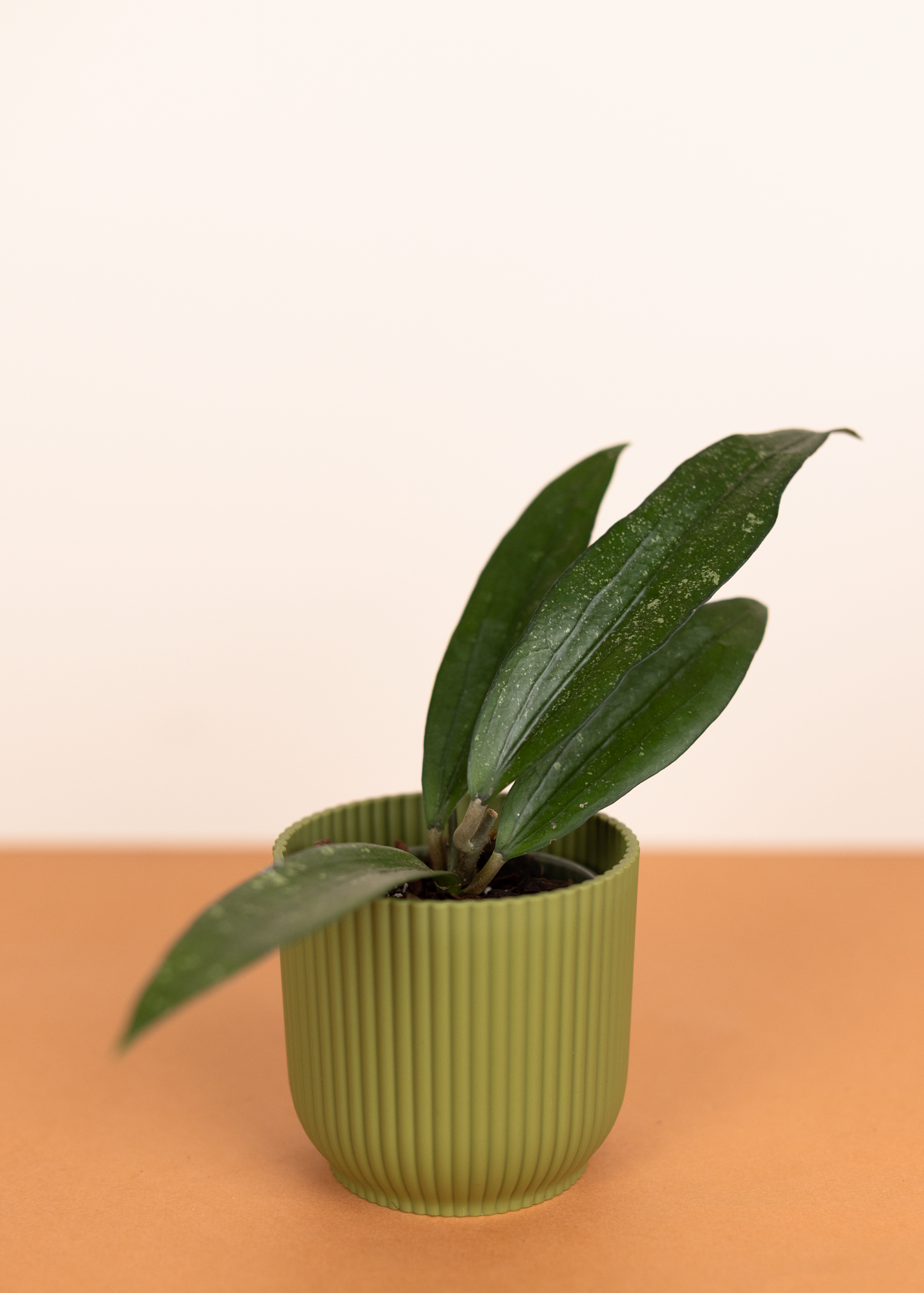 Die Hoya sp. Rindu Rafflesia ist eine seltene, begehrte Sammler-Hoya mit außergewöhnlichem Charakter. Ihre kräftigen, leicht strukturierten Blätter zeigen eine intensive grüne Farbe und entwickeln bei optimalem Licht oft eine wunderschöne, satte Tönung.