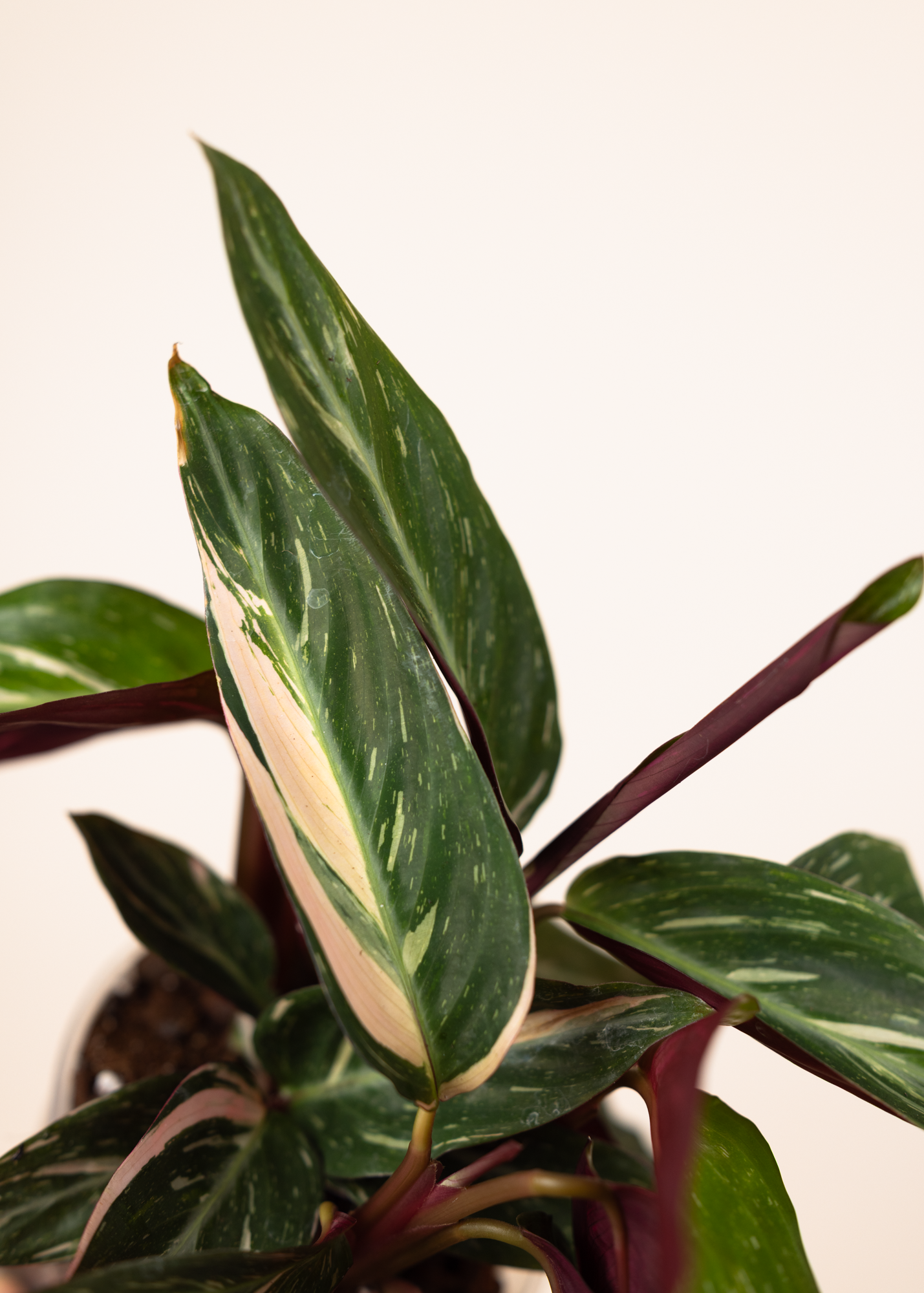 Als Teil der Maranten-Familie gehört auch die Stromanthe zu den „Gebetspflanzen“ und bewegt ihre Blätter im Tagesverlauf – ein faszinierendes Detail, das deinem Zuhause Dynamik verleiht.