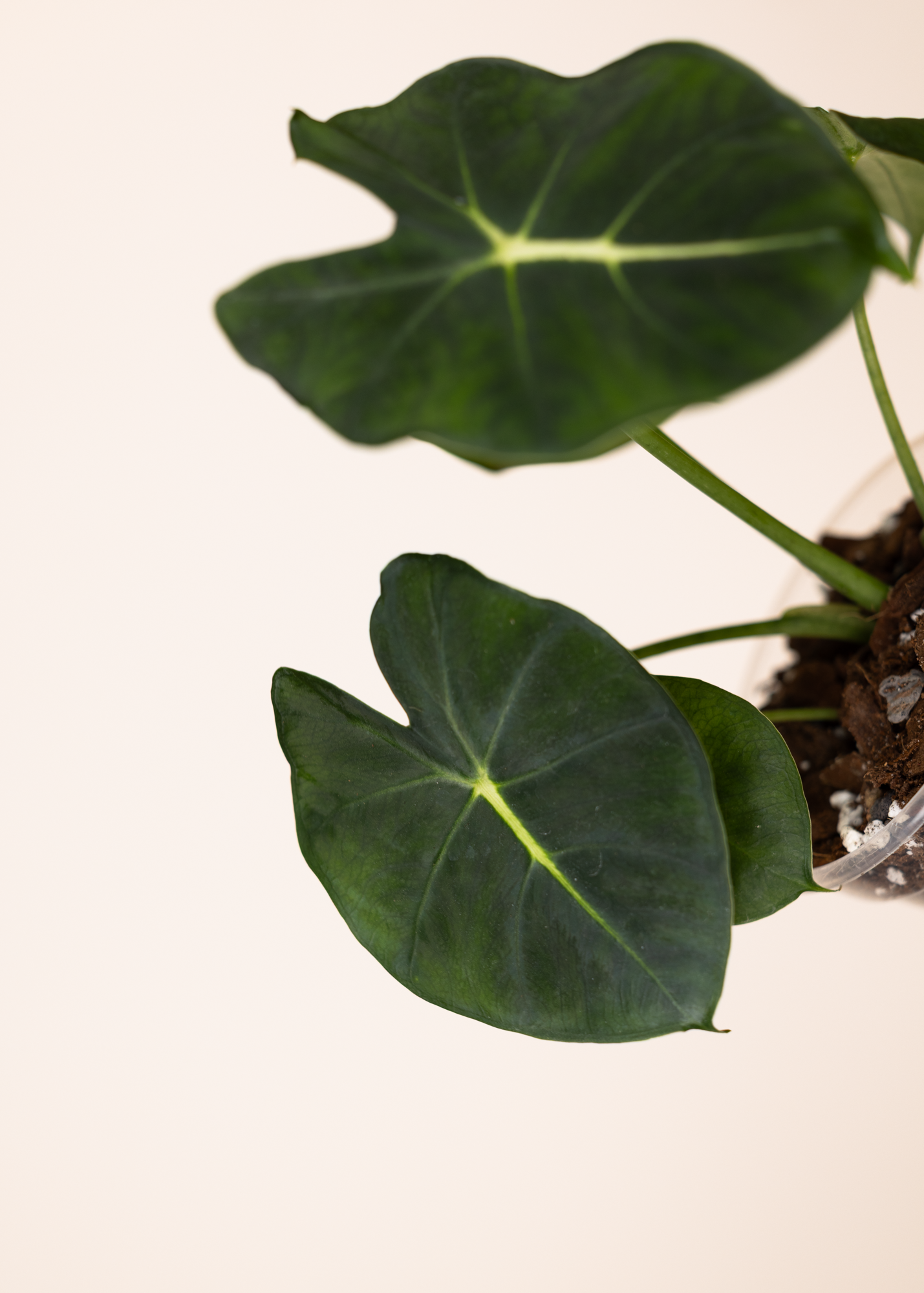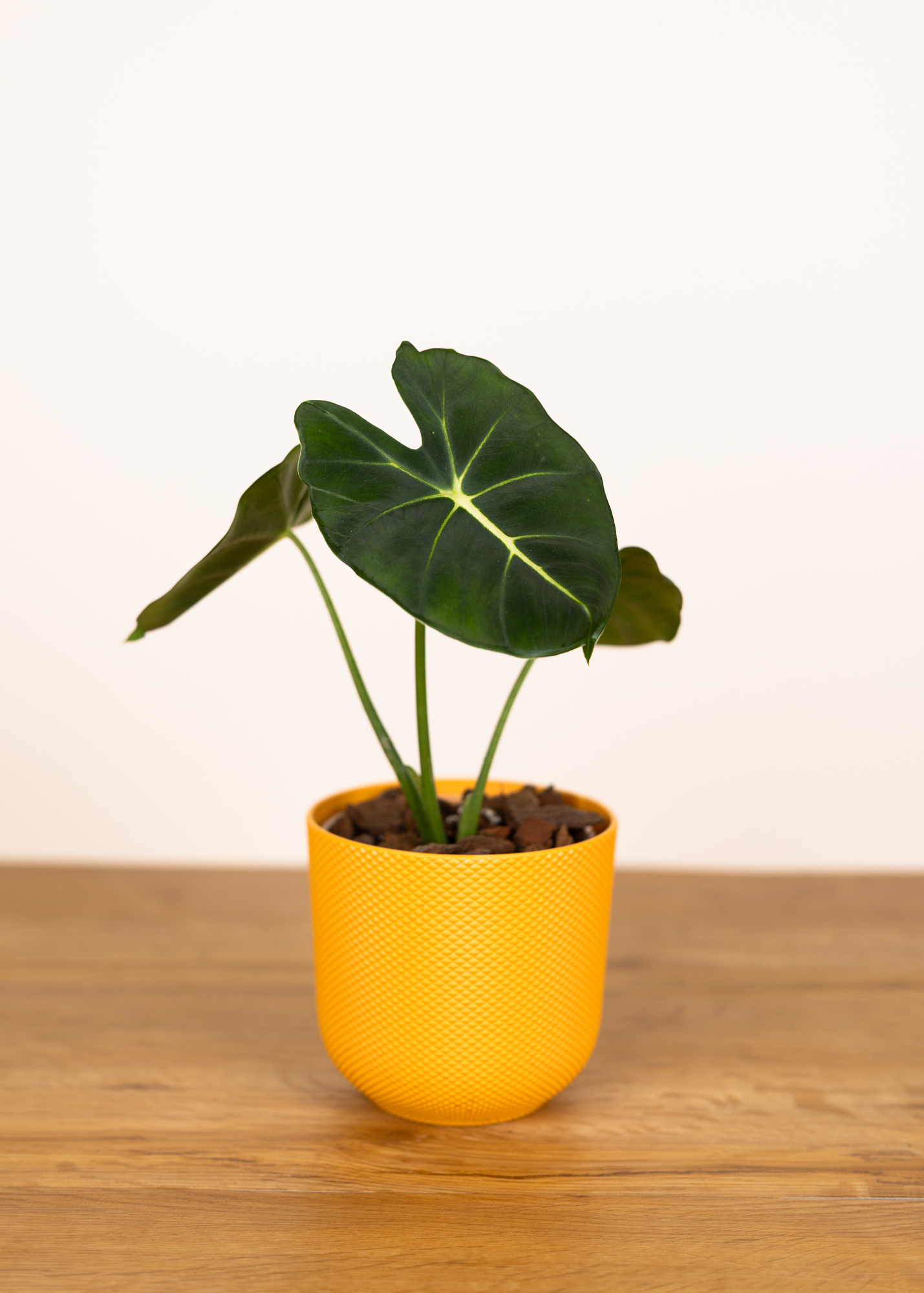 Sie bevorzugt einen hellen Standort ohne direkte Sonne, ein luftiges Substrat und eine erhöhte Luftfeuchtigkeit – typische Bedingungen für Alocasien, unter denen sie sich optimal entwickeln kann.