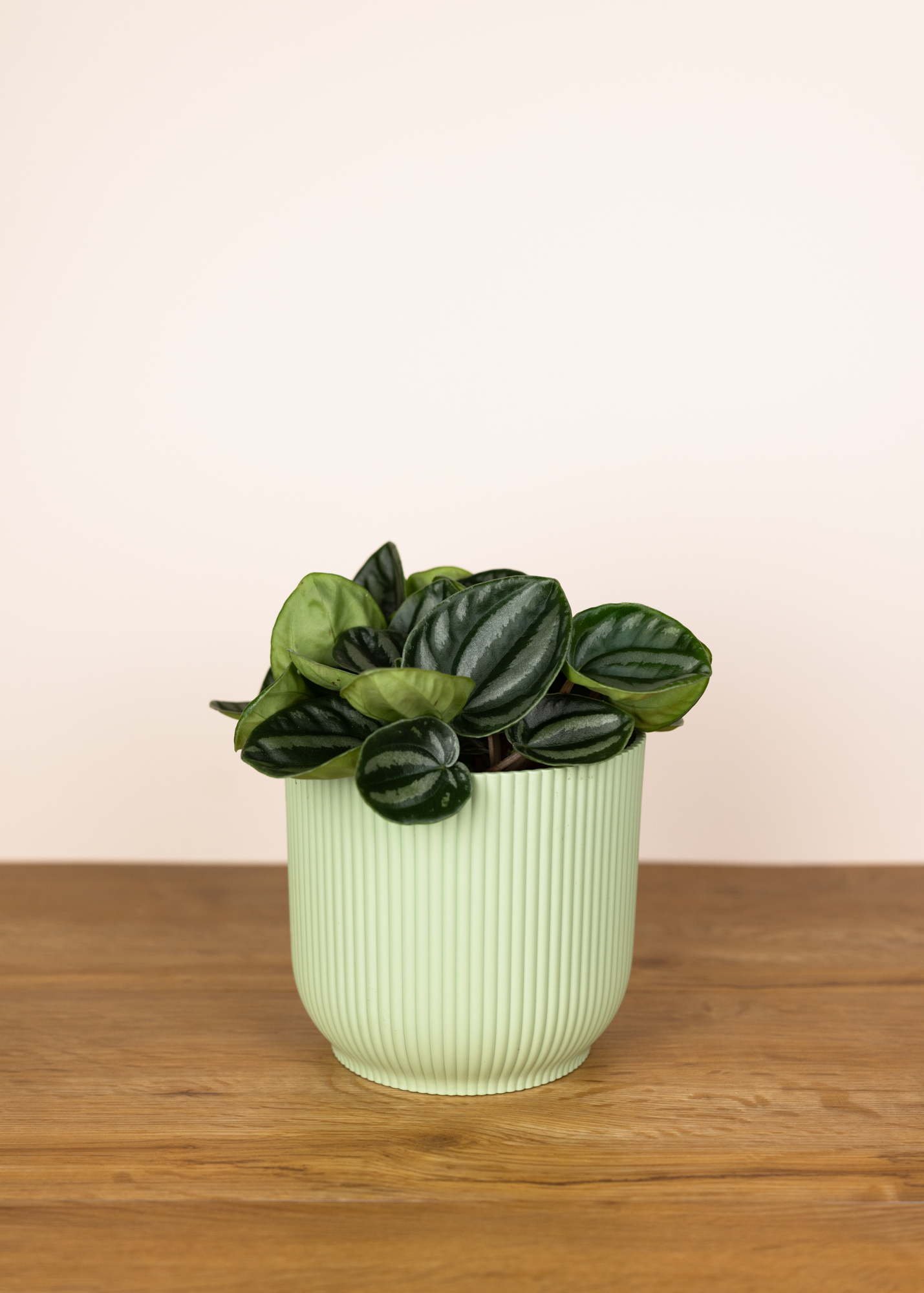 Die sattgrünen, glänzenden Blätter wirken durch ihre gerillte Oberfläche fast skulptural und bringen spannende Textur in dein Pflanzen-Setup. Durch ihren aufrechten, leicht buschigen Wuchs eignet sie sich ideal für Regale, Fensterbänke oder als besonderes Detail im Urban Jungle.