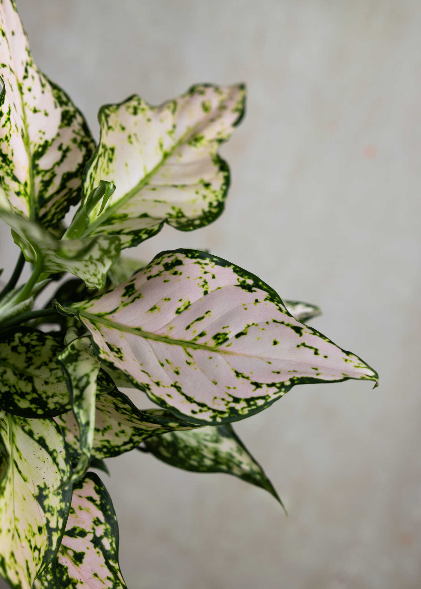 Die Aglaonema ‘Siam Aurora’ ist eine der beliebtesten und farbintensivsten Sorten unter den Aglaonemas. Ihre leuchtend roten Blattadern und -ränder bilden einen wunderschönen Kontrast zum satten Grün der Blattflächen – ein echter Hingucker, der jedem Raum sofort Wärme und tropisches Flair verleiht.
