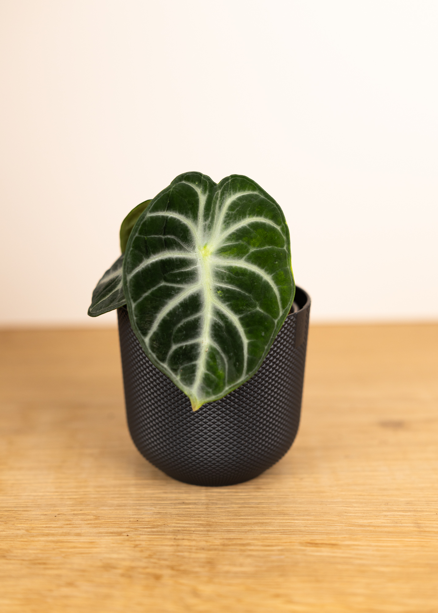 Die Alocasia Ninja ist eine echte Erscheinung: ihre fast schwarzen Blätter mit metallischem Glanz sehen aus, als wären sie direkt aus einem Fantasy-Film entsprungen. Und trotz ihres dramatischen Looks ist sie gar nicht so anspruchsvoll – solange sie genug Luftfeuchtigkeit bekommt, wächst sie zuverlässig weiter.