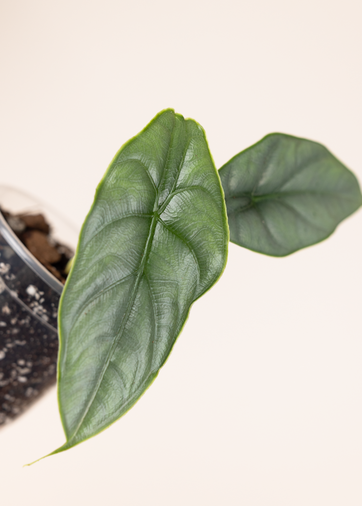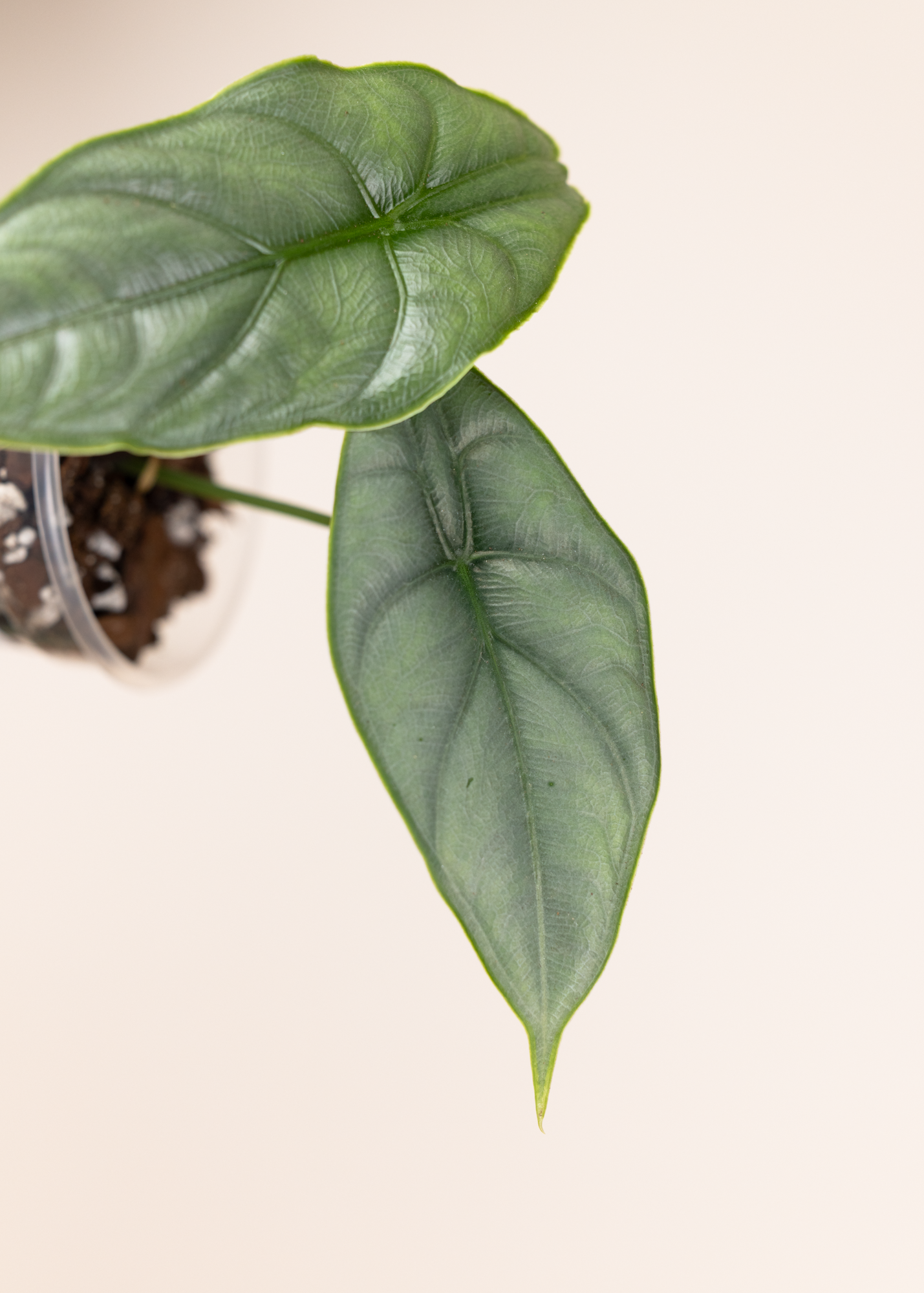Im Vergleich zu vielen auffälligen Hybrid-Alocasien wirkt sie ursprünglicher und minimalistischer – fast wie direkt aus dem tropischen Regenwald. Genau das macht sie so besonders: eine natürliche Schönheit mit klarer Formensprache.