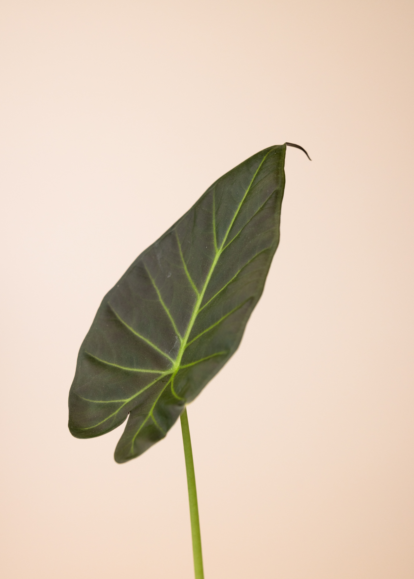 Ihre kräftigen Blattstiele und der aufrechte Wuchs machen sie zu einer echten Statement-Pflanze, die sowohl einzeln als auch in Kombination mit schlichten Übertöpfen perfekt zur Geltung kommt. Trotz ihrer imposanten Erscheinung gilt die Regal Shield als robuster und pflegeleichter als viele andere Alocasien – ideal auch für Alocasia-Einsteiger:innen.