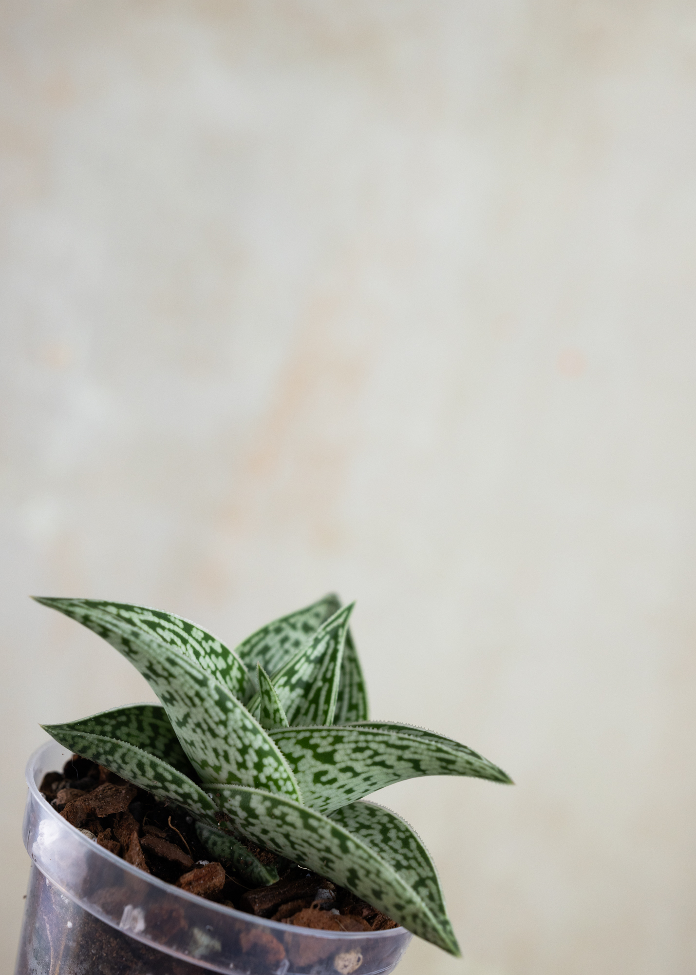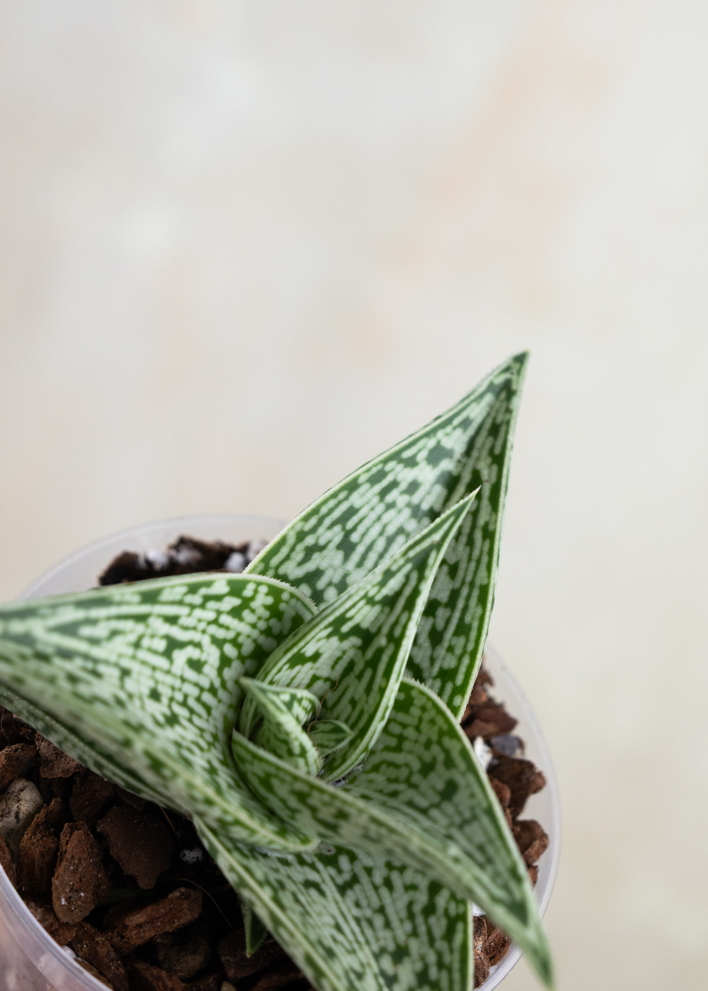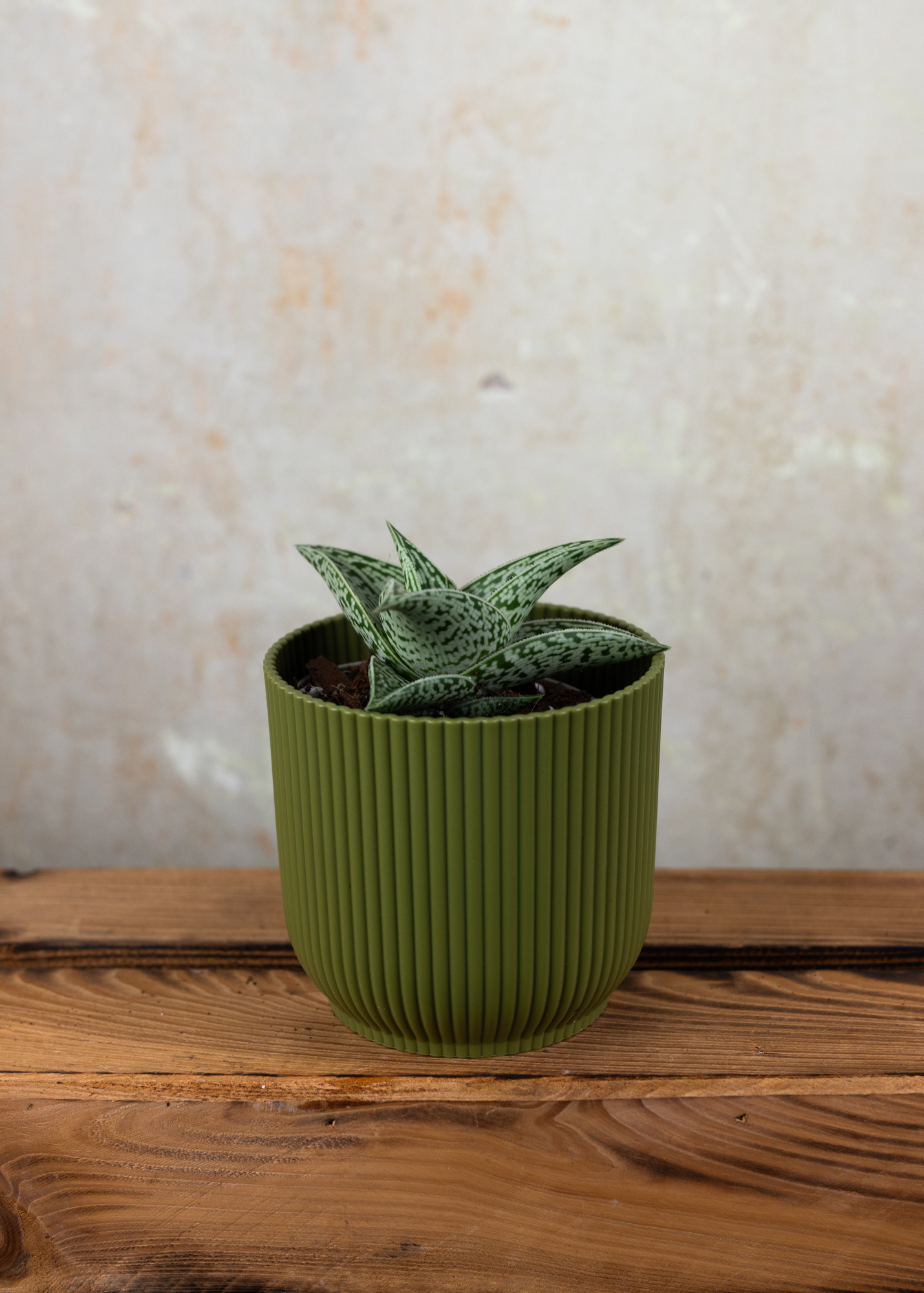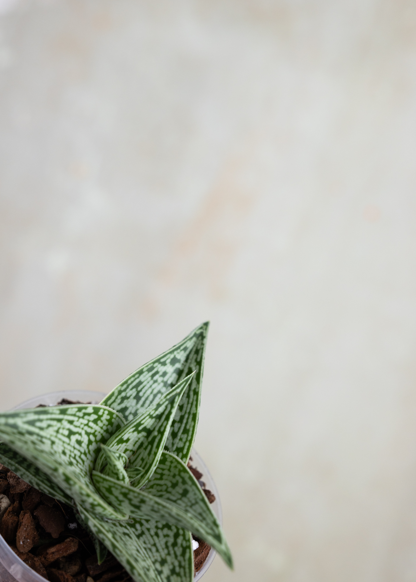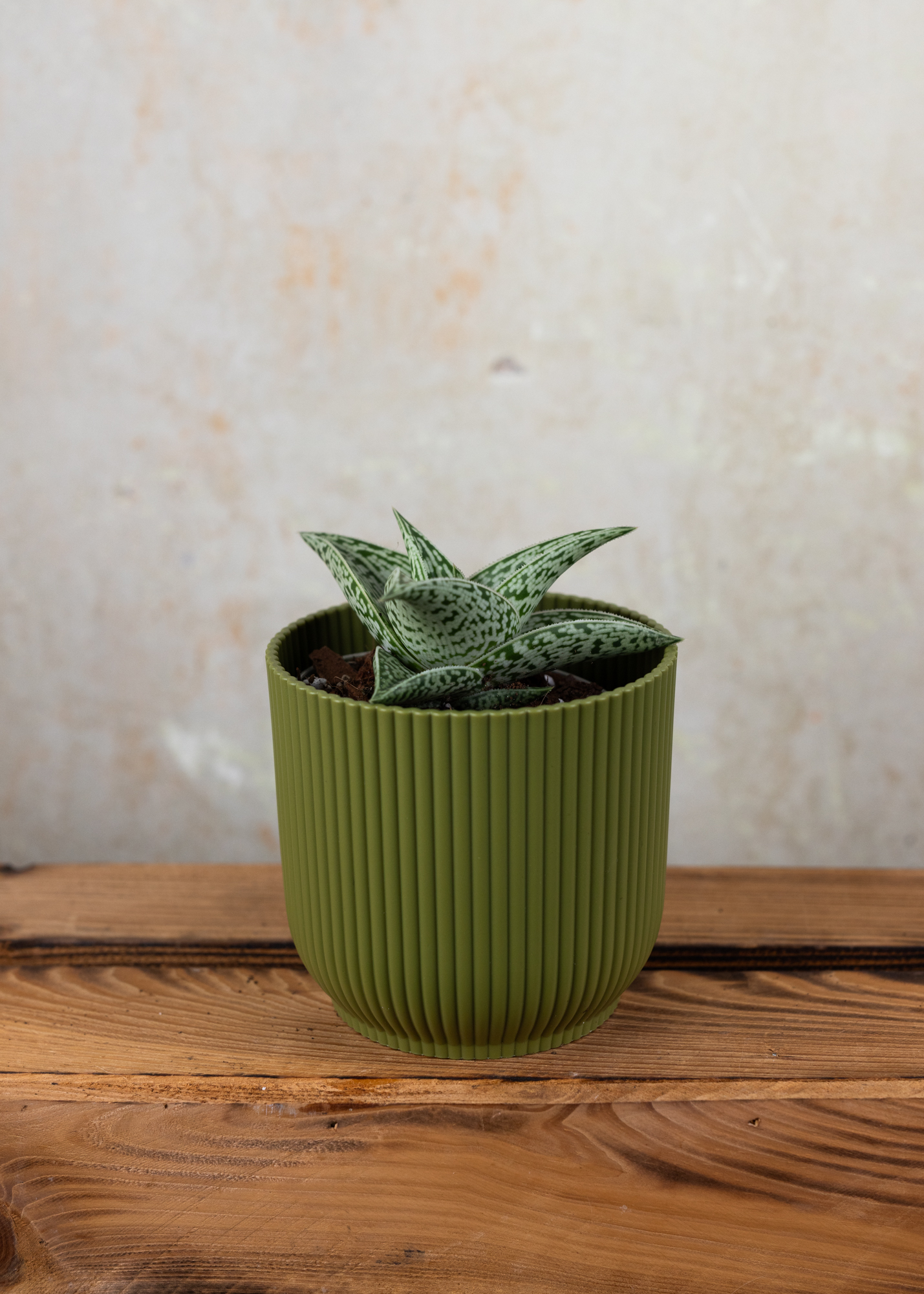 Die Tiger Aloe ist äußerst pflegeleicht, robust und genügsam. Sie bevorzugt helle bis sonnige Standorte und speichert Wasser in ihren Blättern, wodurch sie längere Trockenphasen problemlos übersteht. Perfekt für Fensterbänke, kleine Töpfe oder moderne Pflanzendekorationen.