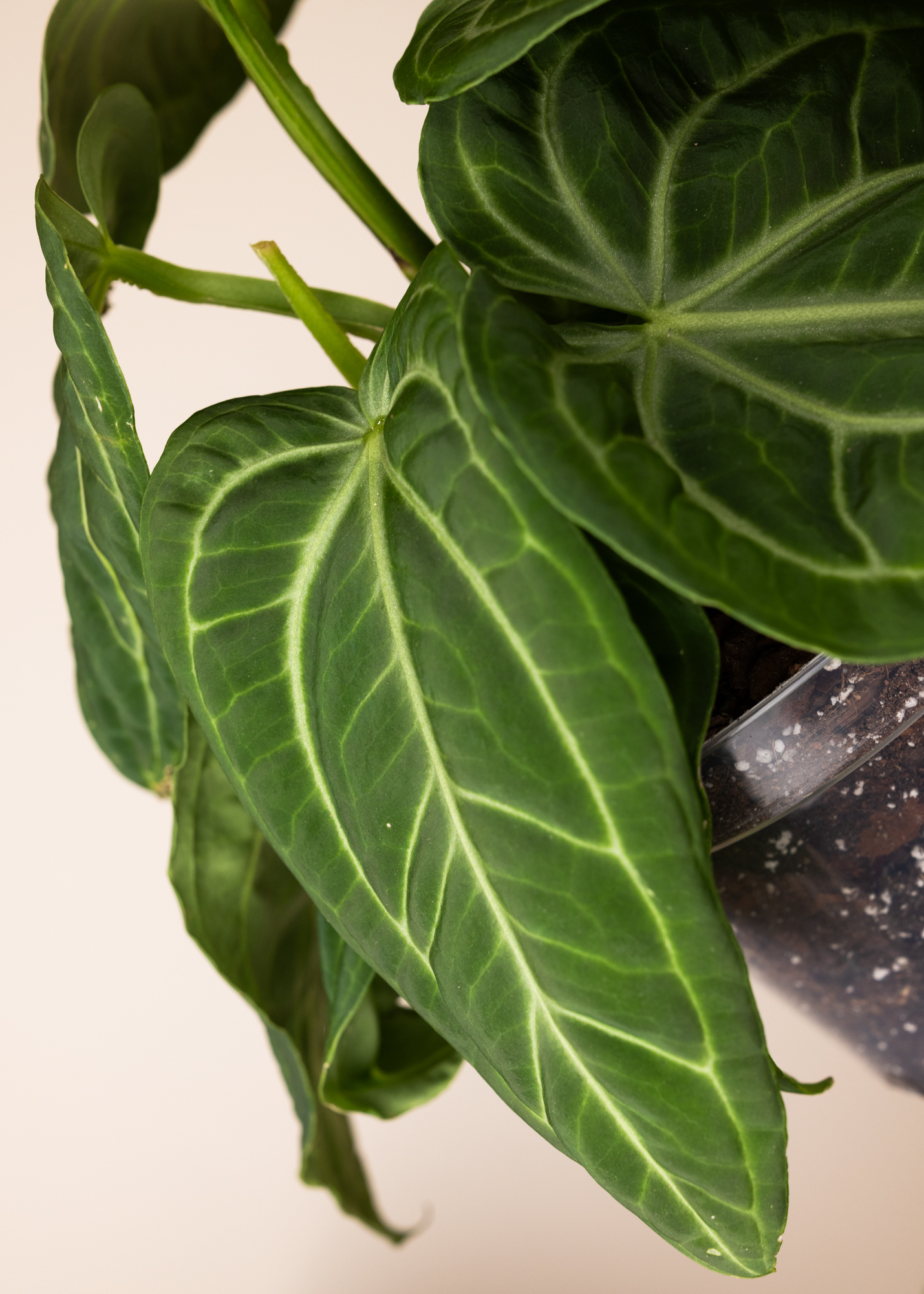 Die Anthurium Villenaorum ist eine absolute Rarität und ein Traum für Sammler! Mit ihren samtig-grünen, strukturierten Blättern und den markanten, tief eingeschnittenen Blattadern zieht sie alle Blicke auf sich. Ihre robuste, fast lederartige Blattstruktur macht sie nicht nur optisch besonders, sondern auch pflegeleichter als viele andere Anthurien.