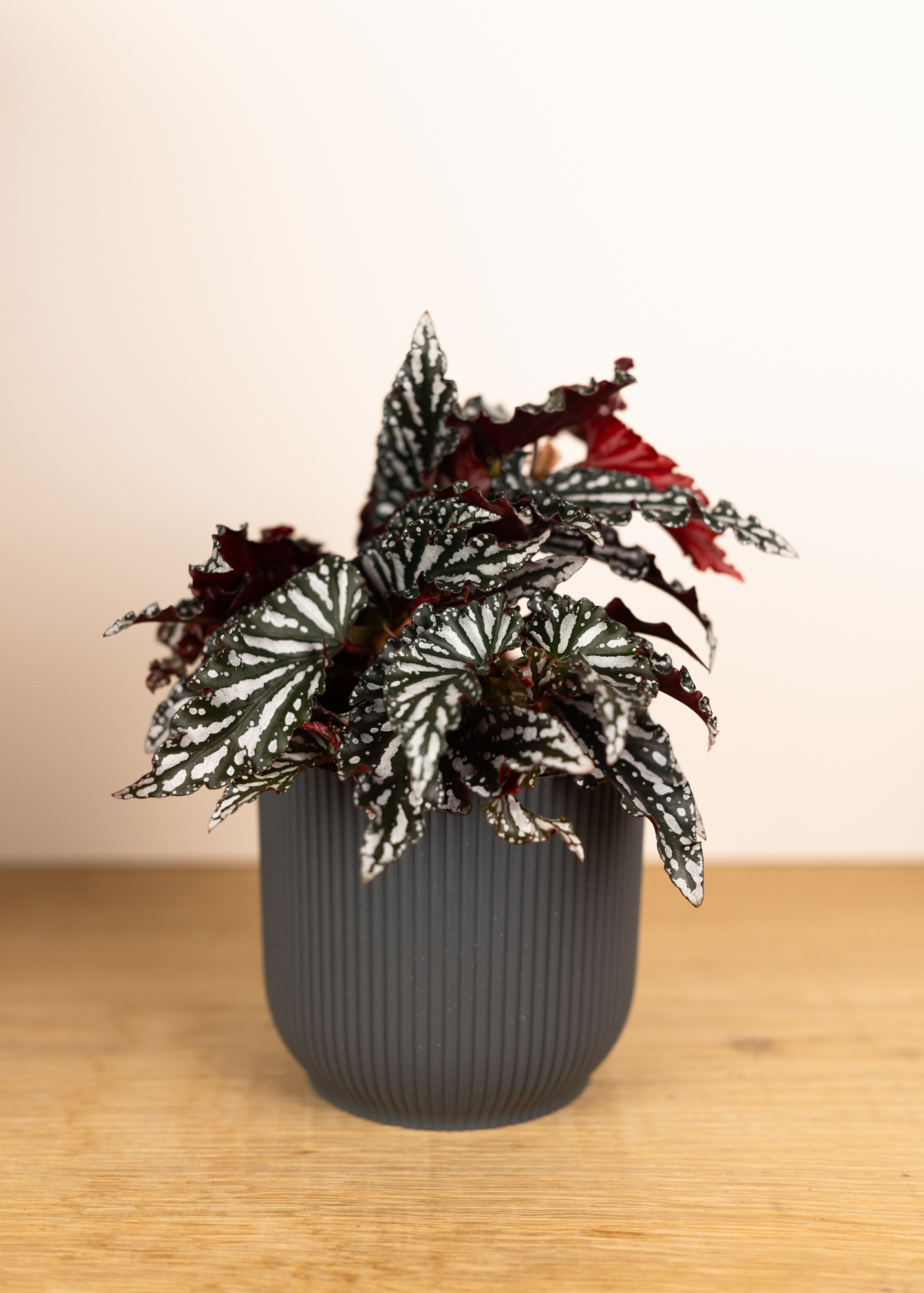 Trotz ihres edlen Looks ist die Begonia Ruby Compact unkompliziert in der Pflege und ideal für Pflanzenliebhaber, die besondere Blattfarben schätzen.