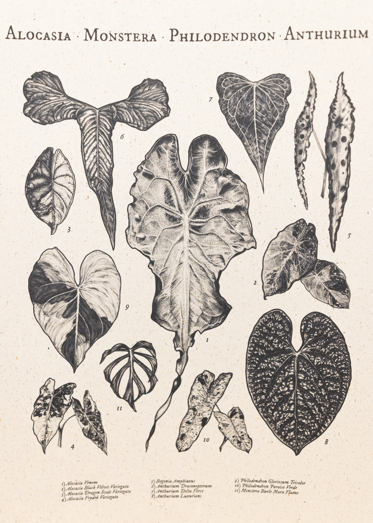 Botanische Illustration - Alocasia, Monstera & mehr A4