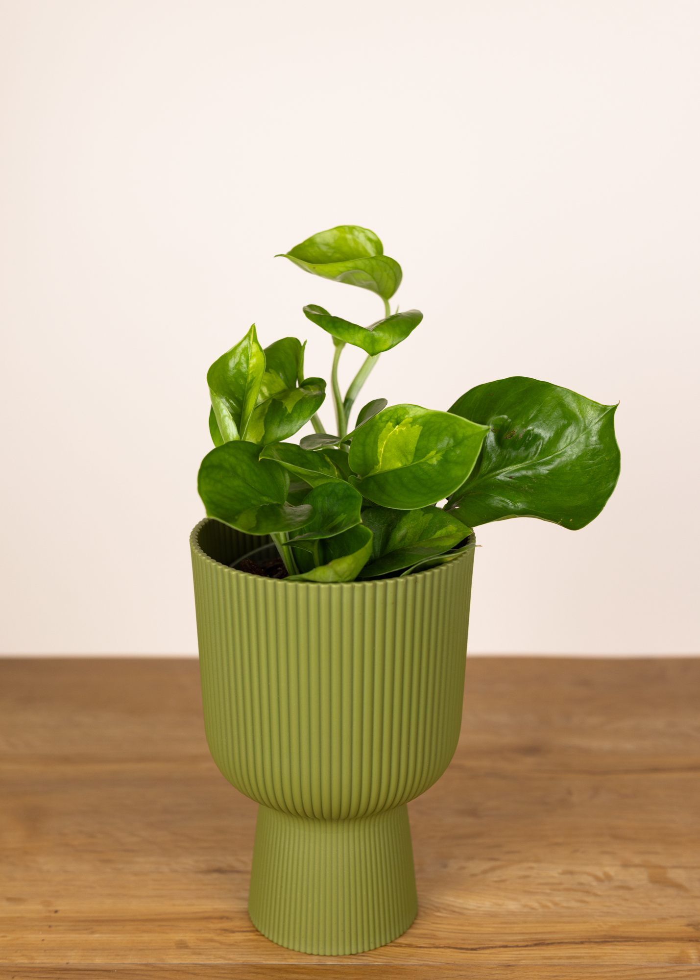 Verleihe deinem Zuhause mit dem Epipremnum Global Green eine erfrischende grüne Note. Dieser pflegeleichte Zimmerpflanze bringt nicht nur natürliche Schönheit, sondern auch frische Luft in deine Räume. Seine üppigen, grünen Blätter sorgen für ein entspanntes und gesundes Raumklima. Der Epipremnum Global Green ist die ideale Wahl für Einsteiger in die Welt der Zimmerpflanzen, da er wenig Aufmerksamkeit erfordert und sich an verschiedene Lichtverhältnisse anpassen kann. Er gedeiht in heller, indirekter Sonne ebenso wie in schattigen Ecken.