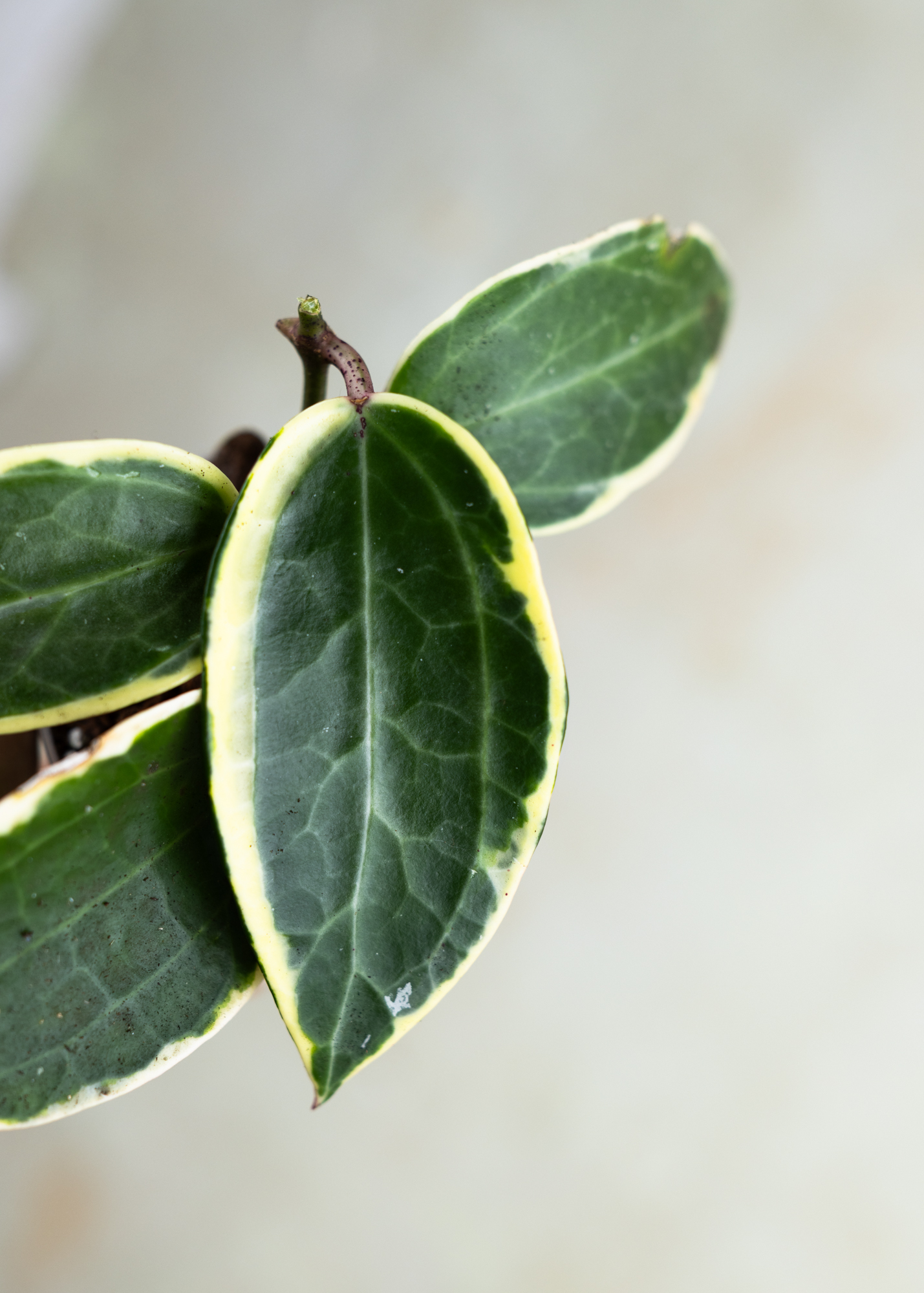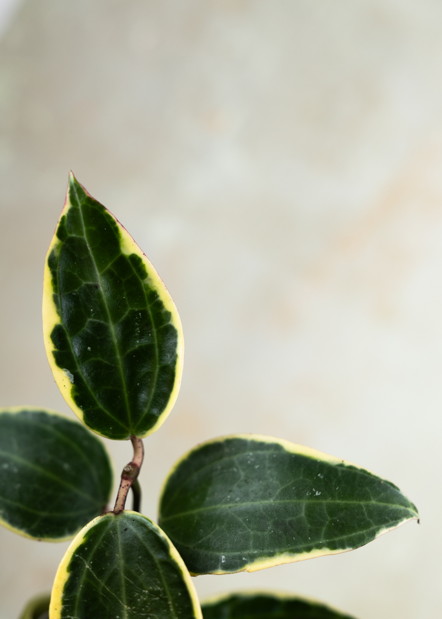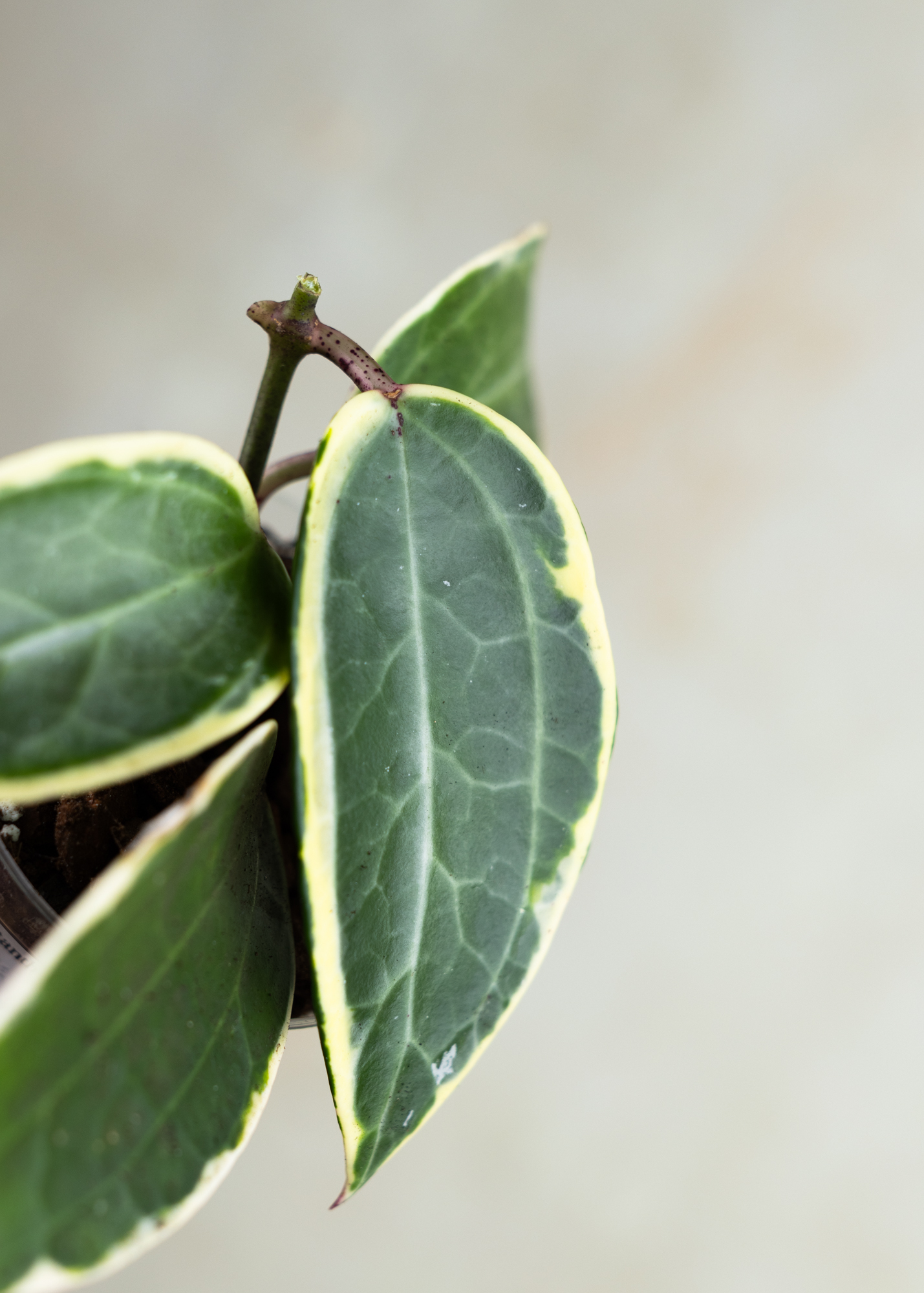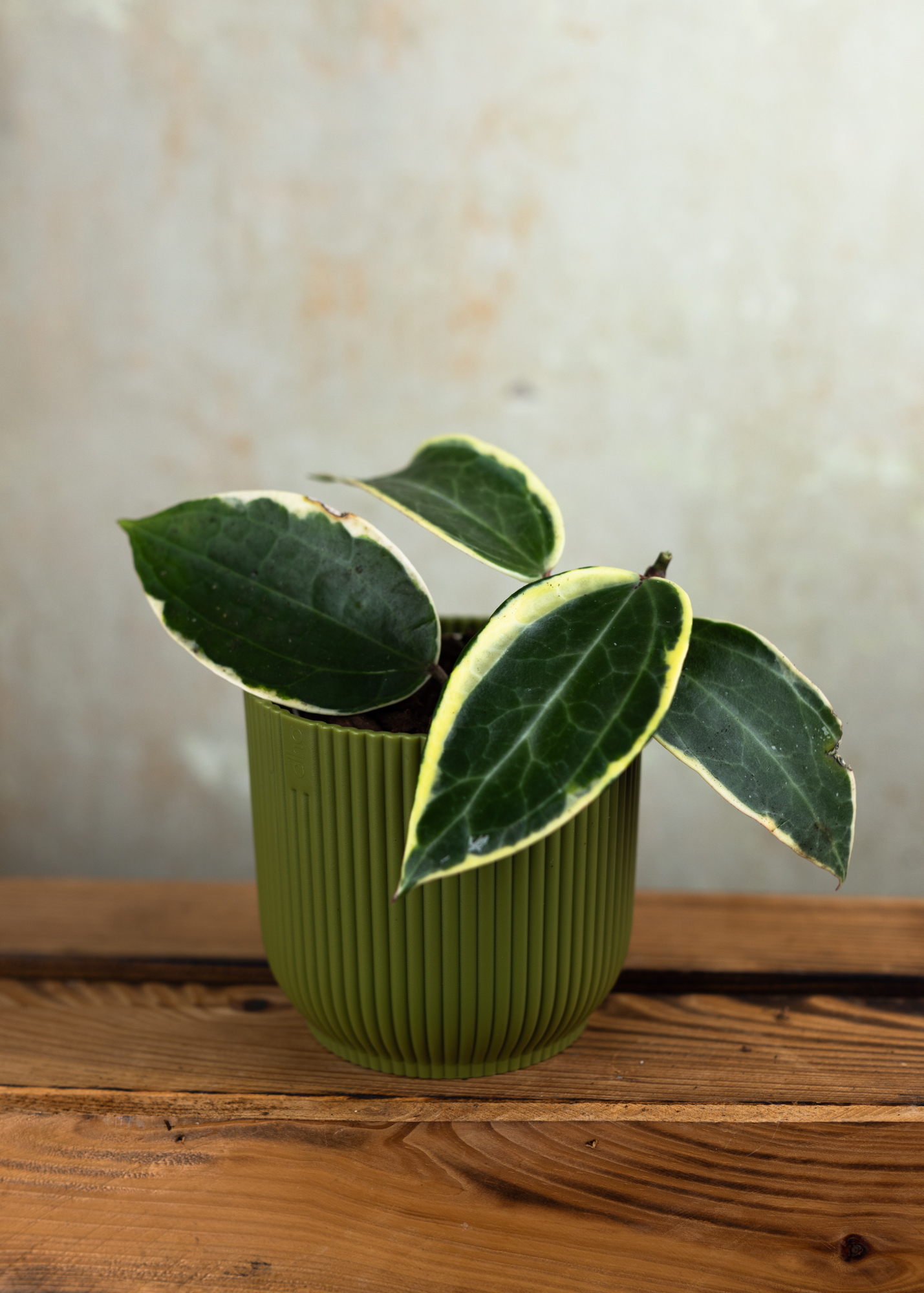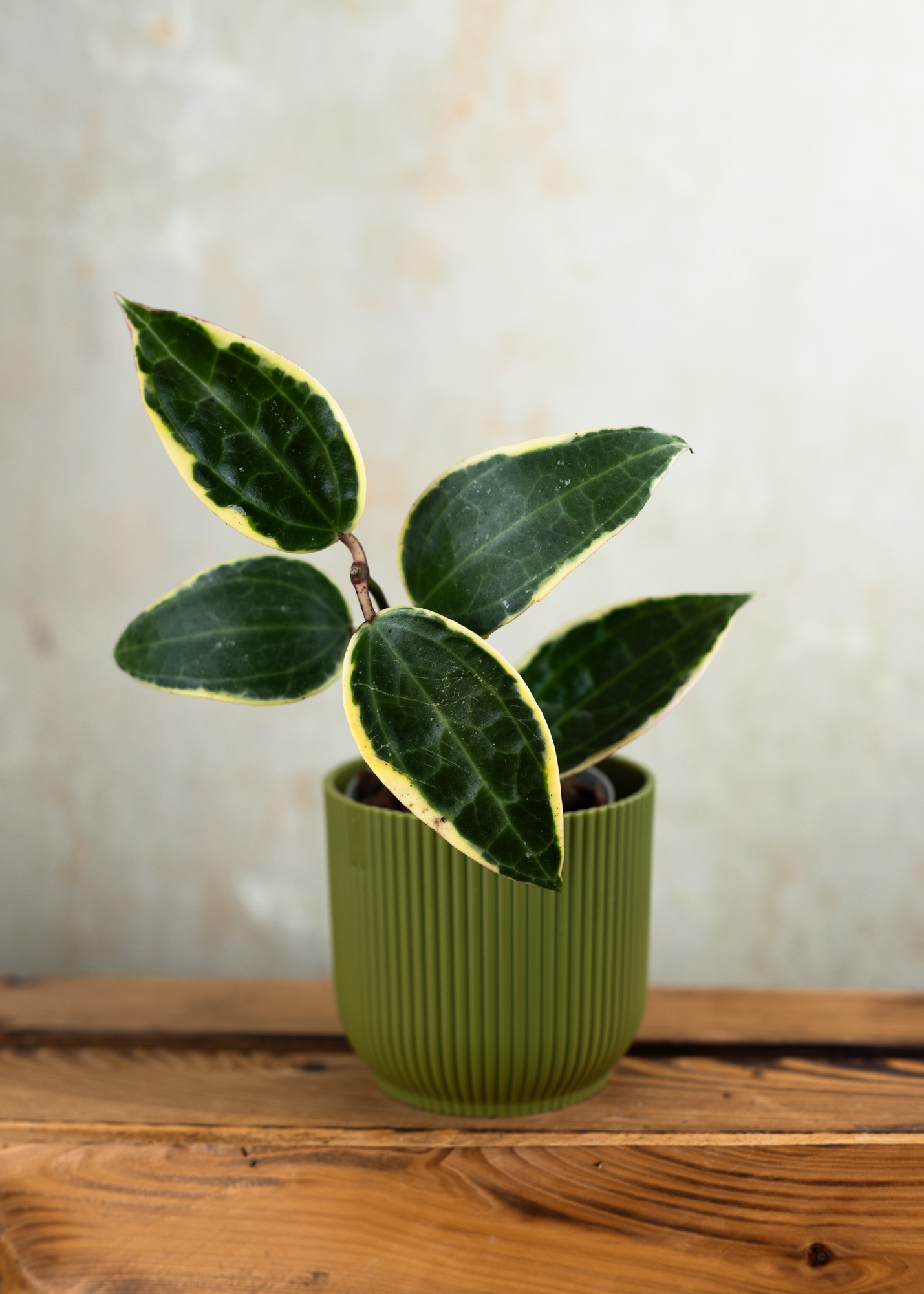 Die Hoya latifolia ‘Albomarginata’ ist eine exklusive Sammlerpflanze für Liebhaber*innen von besonderen Hoyas. Sie beeindruckt mit ihren großen, rundlichen Blättern, die von einem auffälligen, cremeweißen Rand eingefasst sind. Dieser starke Kontrast zwischen sattem Grün und heller Panaschierung macht jedes Blatt zu einem echten Unikat.