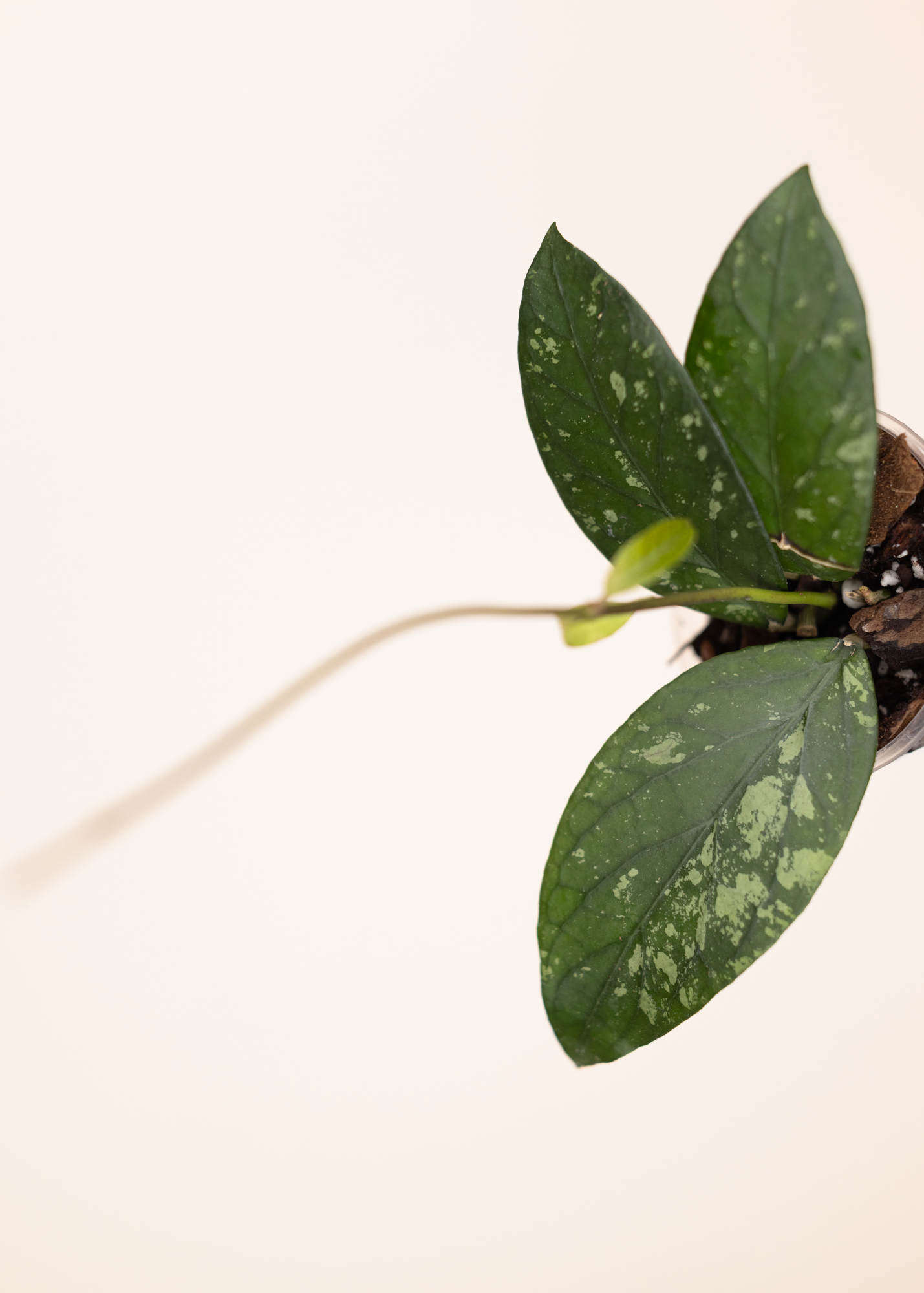 Die Hoya sp. Gayo ist eine seltene, kletternde Hoya mit kräftigen, sattgrünen Blättern und natürlicher, ruhiger Ausstrahlung. Ihre festen, leicht strukturierten Blätter verleihen ihr einen markanten, aber dennoch eleganten Look – ideal für moderne Wohnräume oder Sammlungen besonderer Hoyas.
