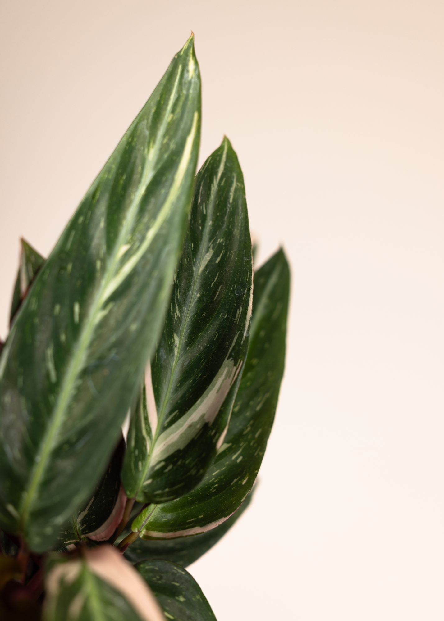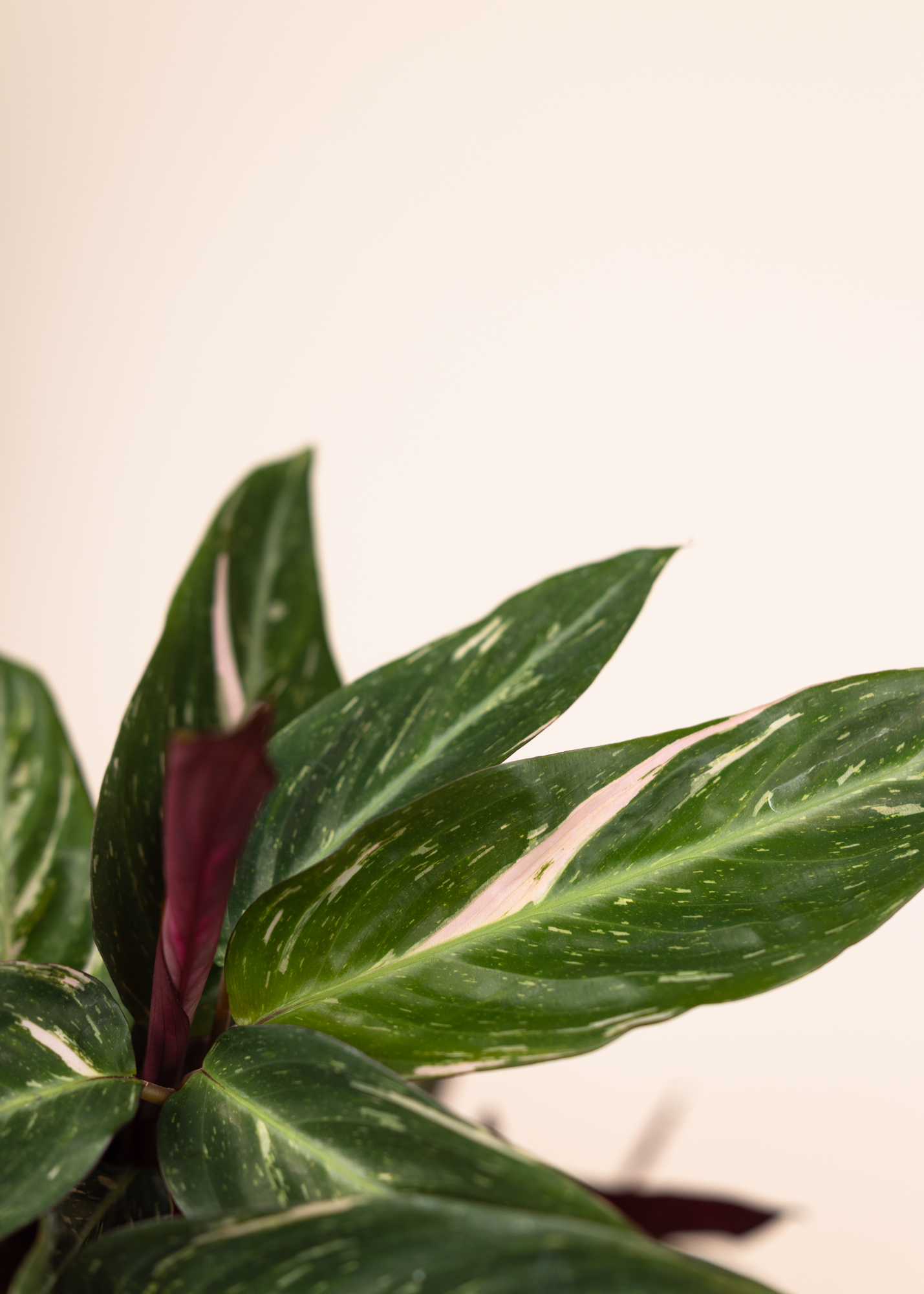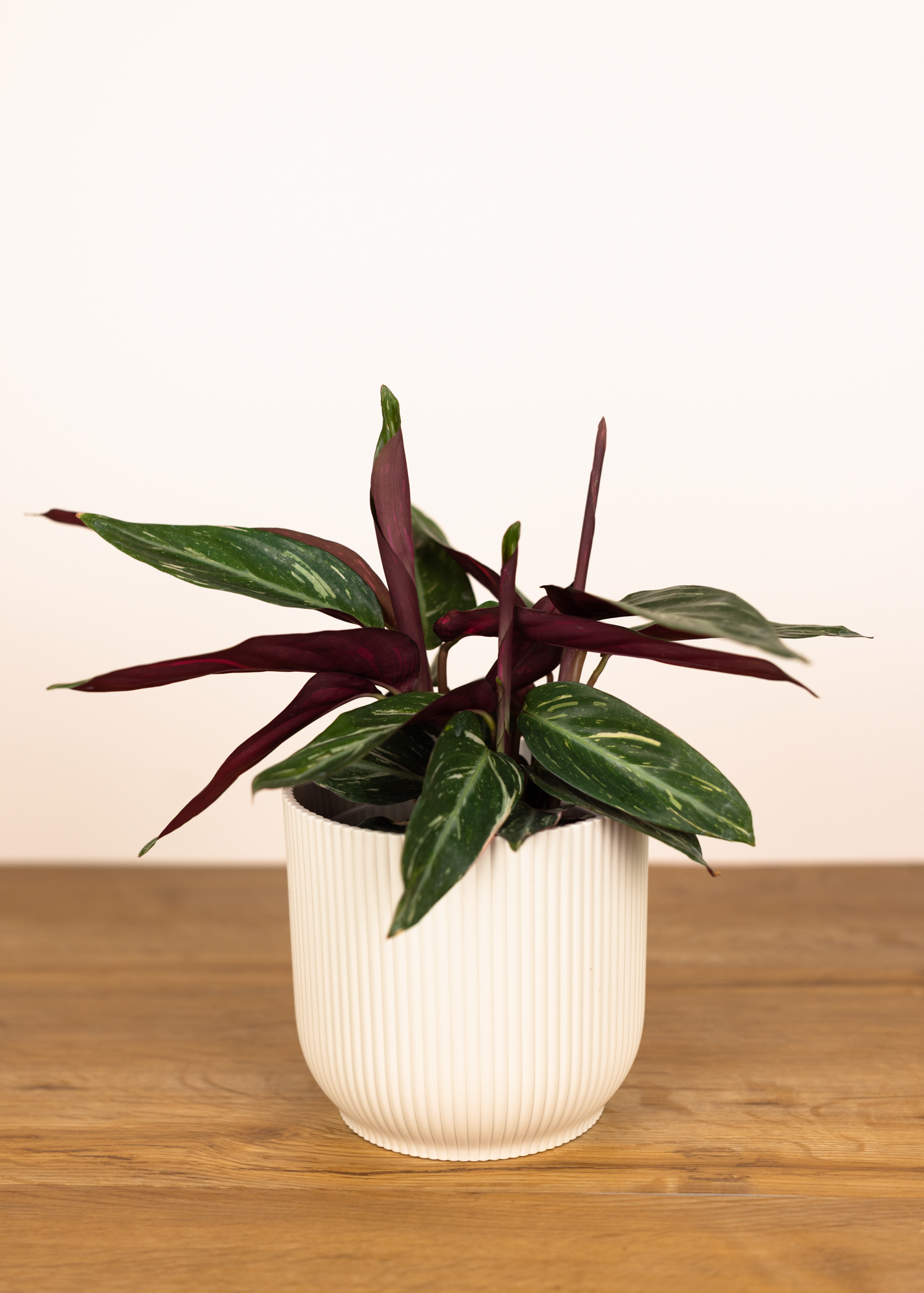 Als Teil der Maranten-Familie gehört auch die Stromanthe zu den „Gebetspflanzen“ und bewegt ihre Blätter im Tagesverlauf – ein faszinierendes Detail, das deinem Zuhause Dynamik verleiht.