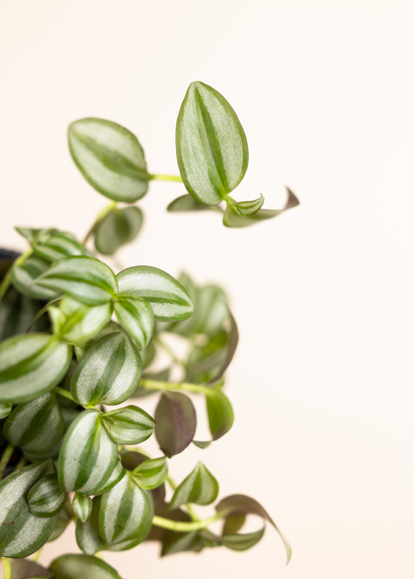 Die Tradescantia zebrina ‘Silver’ ist eine moderne, schnellwachsende Hängepflanze mit auffälligen silbrig-grünen Blattzeichnungen und zart violetter Blattunterseite. Ihre schimmernden Streifen verleihen ihr einen fast metallischen Look – perfekt für moderne Interiors mit Charakter.