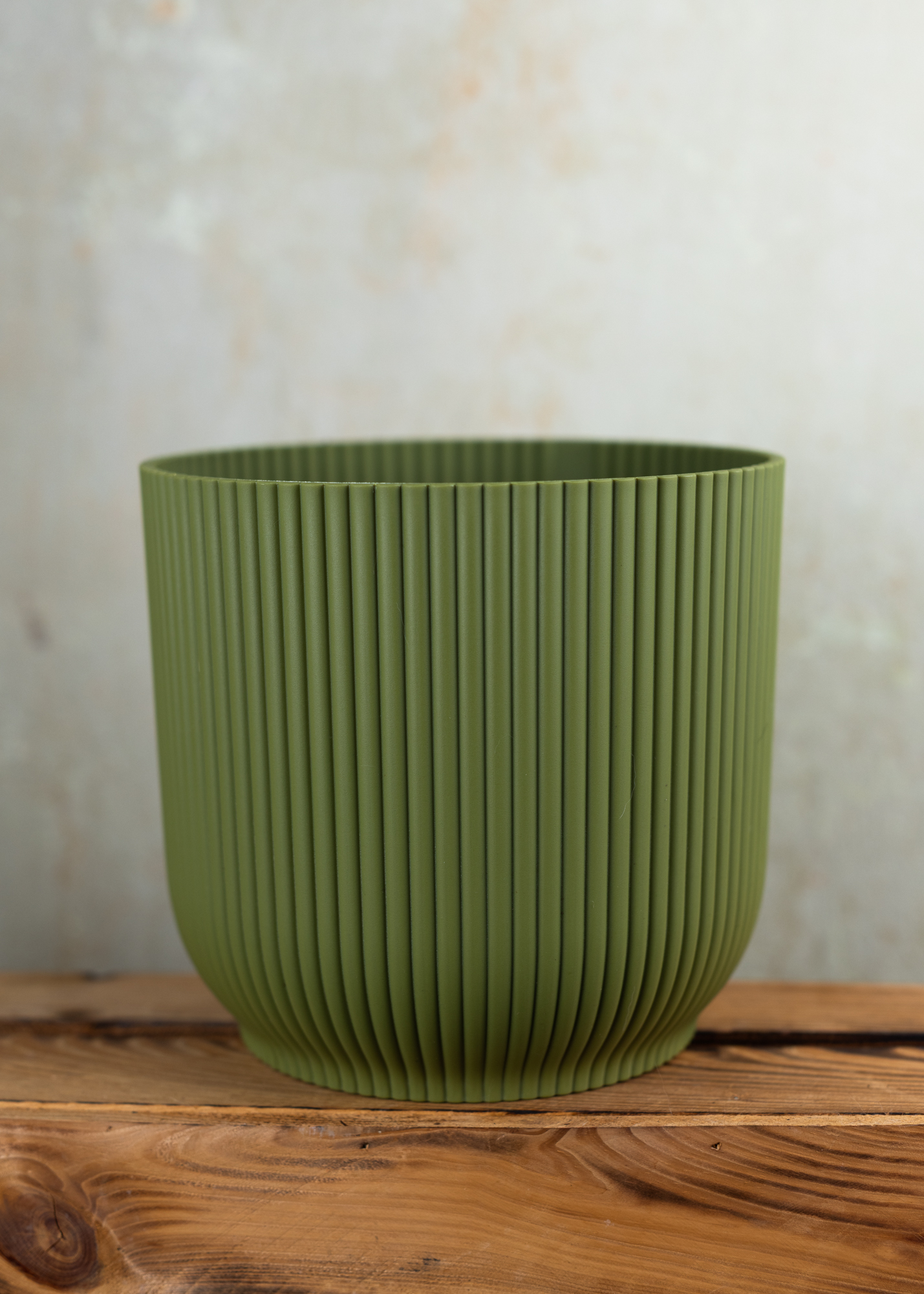 Seine ansprechenden Pastellfarben und das moderne Rippenmuster machen ihn zu einem Blickfang in jeder Einrichtung. Dieser vielseitige Topf bietet nicht nur ein ästhetisches Erlebnis, sondern auch umweltfreundliche Werte. Hergestellt aus recyceltem Kunststoff und produziert mit Windenergie, ist der vibes fold vollständig recyclebar und trägt zur Nachhaltigkeit bei. Die hohe Qualität des vibes fold Blumentopfs gewährleistet eine lange Freude an deiner Pflanzendeko. Die Farben bleiben lebendig, der Topf ist leicht zu reinigen und widersteht Schmutz und Stößen. Mit seiner praktischen Form und Größe kannst du deine Pflanze direkt mit ihrem Innentopf in den vibes fold setzen. Dies fördert ein natürliches Wachstum und eine gesunde Entwicklung deiner Pflanzen. Erfreu dich an der Harmonie von Design und Natur mit dem vibes fold Blumentopf – eine stilvolle Wahl für deine Pflanzen und für die Umwelt.